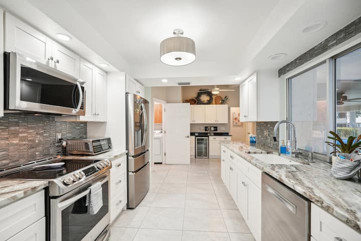 户外空间:在带暖气的私人泳池旁放松身心,这是获得完整佛罗里达体验的完美方式。 点燃烧烤架,在带露台家具的户外用餐区享用户外用餐。 从后院欣赏佛罗里达州日出的宁静景色,从后院可以看到您自己的船滑道,非常适合划船。