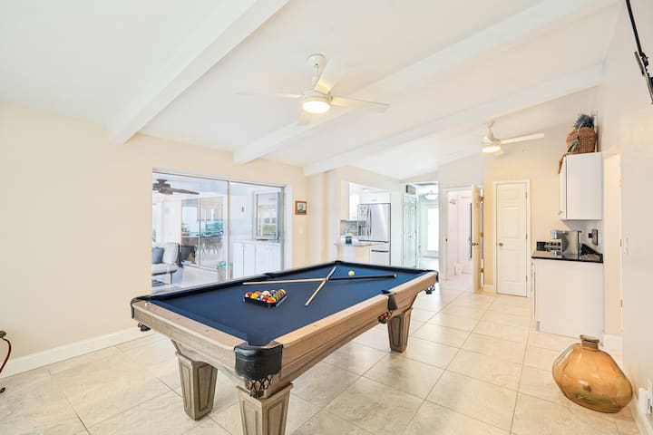 入住佛罗里达州珊瑚角这座宁静的3卧室海滨房源。 宽敞的度假屋最多可容纳6位房客,设有加热泳池、船滑梯和设备齐全的厨房。 您可以在配备Netflix、HBO Max和Hulu的开放式客厅放松身心,或享受户外烧烤和用餐区。 位于市中心,靠近海滩、餐厅和热门景点,是宁静度假或充满乐趣的度假的理想选择。 马上预订我们的房源!