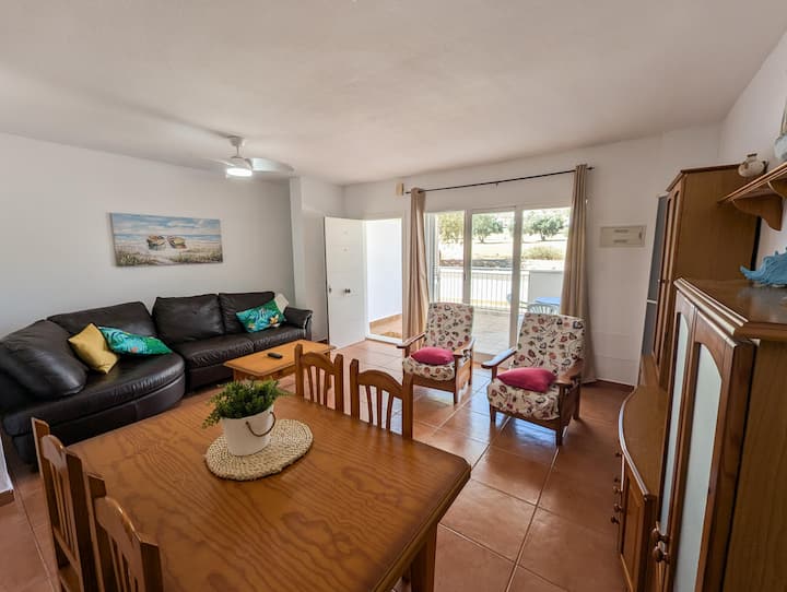 此房源位于Avda的Mojácar Playa北端。 位于海滨高尔夫球场和酒店之间的Costa Levante en Marina de la Torre,距离海滩仅几步之遥(不到100米)。 Marina de la Torre海滩有小酒吧,夏天有遮阳伞和日光浴床可供出租。 距离下一个海滨村庄Garrucha不到一公里。
