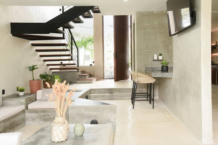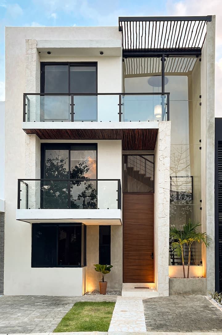 房源位于一个可以快速前往坎昆最佳景点的区域。 它将以其现代设计与质朴和热带风情融为一体,吸引您。 别墅共有3层,设有6间卧室(其中2间带有独立卫生间)和4.5间卫生间,在奢华与舒适之间达到完美平衡。 一楼设有优雅的厨房、宽敞的餐厅、半卫生间和带泳池的客厅,自然光线和精致设计将使您的照片成为真正的艺术作品。