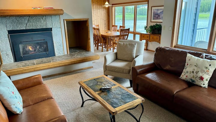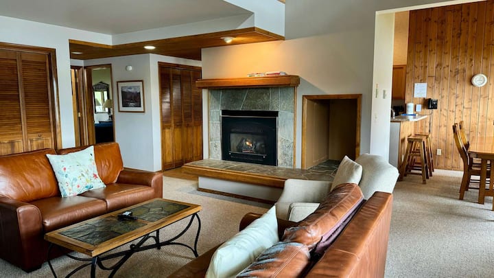 - * *起居区: * *温馨舒适的客厅,配有两张舒适的沙发,其中一张可拉出一张全尺寸床。 大型平板电视和燃气壁炉,非常适合在冒险一天后放松身心。