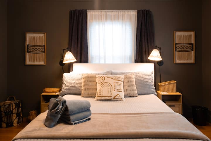 我们拥有百年历史的砖砌房源位于西格林斯伯勒(West Greensboro)的主干道上,位于一个适合步行的街区。 她配备了所有现代便利设施(洗衣机/烘干机、数十个以太网端口、每间卧室的电视、圆形浴帘杆、玻璃炉灶和无线网络) ,但仍然保留了她的历史魅力,包括高天花板、宽阔的模具、木地板、装饰天花板和带铅玻璃门。 从您走进来的时候,您会觉得自己回到了过去。