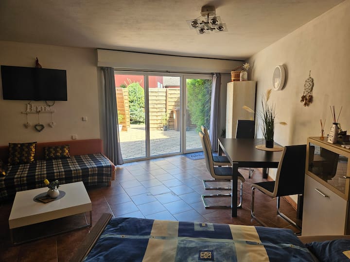 带花园和休息区的公寓。