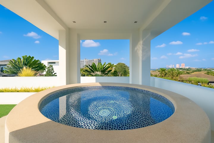 欢迎来到位于中天海滩棕榈绿洲别墅( Palm Oasis Villas )的豪华3卧室泳池别墅-这栋美妙的度假别墅采用现代L型设计,屋顶平整,配有阴凉的按摩浴缸。 有一个带滑水道的私人泳池,吸引您去游泳。 中性色与特色和家具完美融合。 这栋别墅配有高大的镜面衣柜、充足的储物空间和床铺,这栋别墅一定会让您拥有舒适和放松的住宿体验。