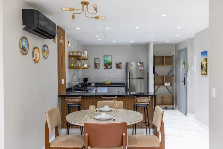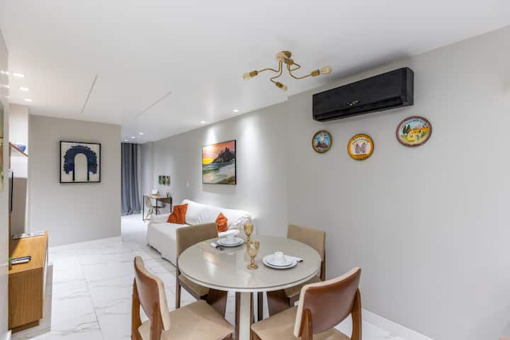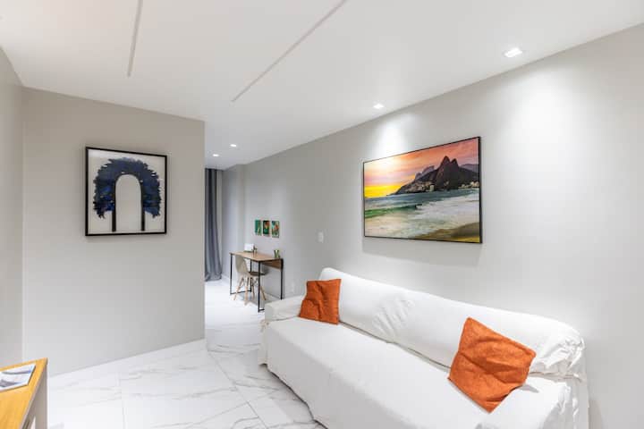 在这处高标准房源中,与全家人尽情放松。 非常安静,毗邻坎塔加洛地铁站,高速无线网络,有线电视,全新装修,所有房间均配备空调,配备套房,为您的舒适而设计,距离Post 5和Arpoador、Lagoa、Ipanema和Leblon的科帕卡巴纳海滩仅几步之遥,配备24小时超市、24小时药店、银行、健身房、私人停车场、酒吧、餐厅。