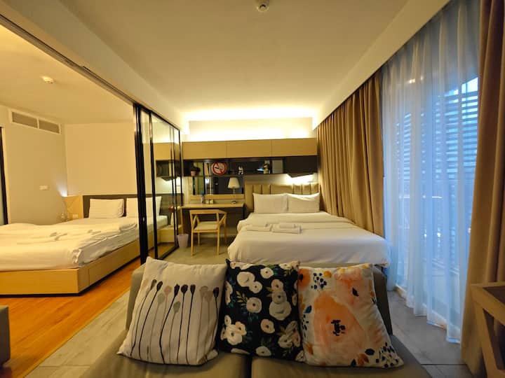 4人市中心二卧套房/适合家庭/连住4晚赠送接机/免费泳池&GYM/中国房东/地铁步行5分钟/四面佛5