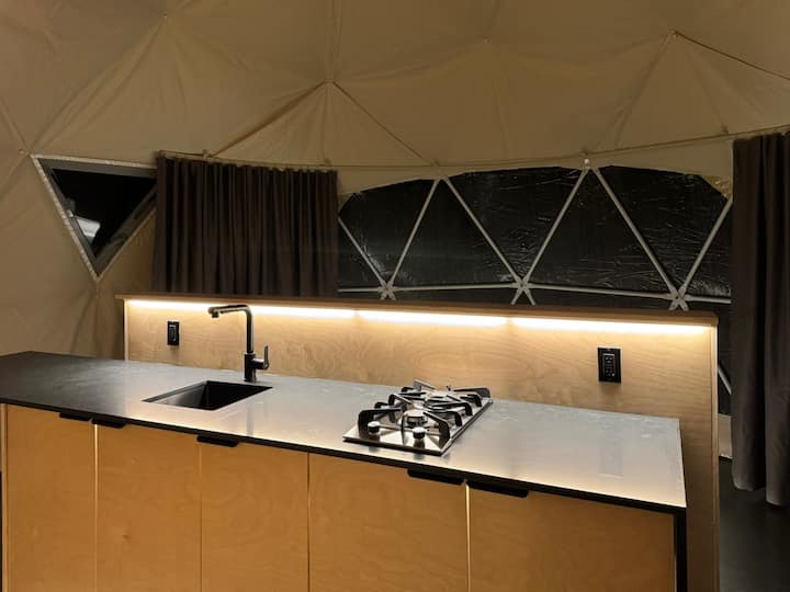 为方便起见,圆顶屋配有独立的厕所,内部有一个可堆肥的马桶。 * *这不是全功能卫生间* *厨房水槽可用于洗手。
