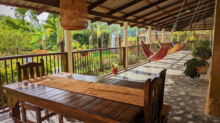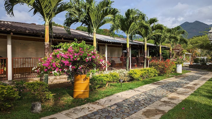 在哥伦比亚山脚下,在这个独特而宁静的度假胜地放松身心。 我们的房子里有2间客房可供出租。 您可以享用游泳池、骑自行车穿越城镇、徒步登山和观鸟,同时品尝晨间咖啡。 我们距离卡利( CLO )、佩雷拉( PEI )和亚美尼亚( AXM )三个主要机场仅1.5小时车程,是轻松入住的便利地点。 我们距离Roldanillo滑翔伞天堂也只有15分钟车程。