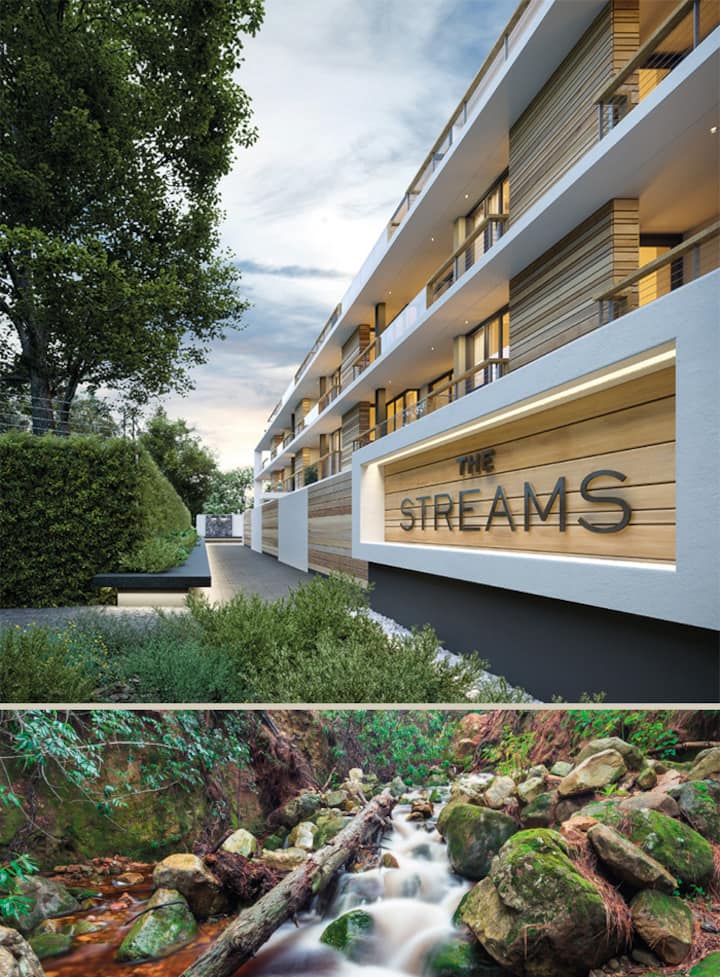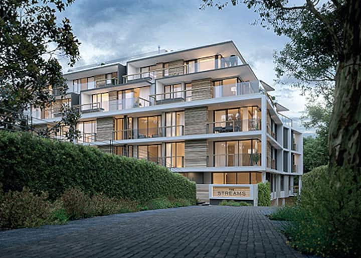 现代顶层公寓:绿叶成荫的纽兰兹(Newlands)泳池和景观。