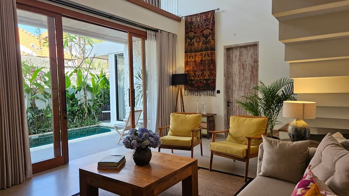 位于Belanjong Sanur街的小巷内,使这个别墅区域相当安静。 别墅经过精心打理,现代简约风格。