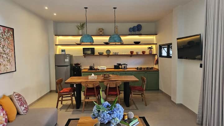 欢迎来到Sumai海滨别墅,这是一栋两层别墅,距离沙努尔海滩仅400米,有3间卧室。 位于安静的沙努尔的别墅区和客房