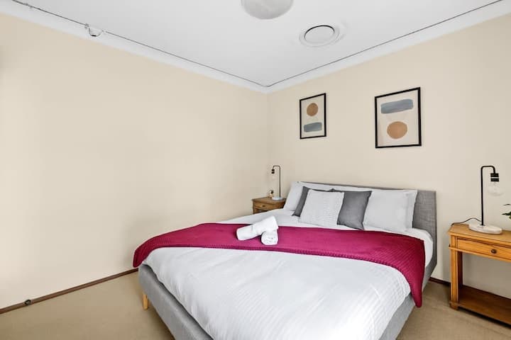 我们现代舒适的房子位于米尔佩拉( Milperra )一条宁静的绿树成荫的街道上,距离最近的巴士站仅100米,距离当地景点和商店仅1分钟车程。
