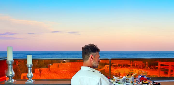 行政海景套房是一间豪华套房,拥有令人惊叹的全景海景,设有带热水浴缸的大阳台,室内空间舒适宽敞,配有额外的热水浴缸! 生态友好酒店/绿色酒店Litohoro OLYMPUS度假村别墅和水疗中心采用独特的建筑风格,拥有手工制作的石材和自然环境,为任何年龄的情侣、家庭和朋友提供安全、舒适和令人兴奋的环境。