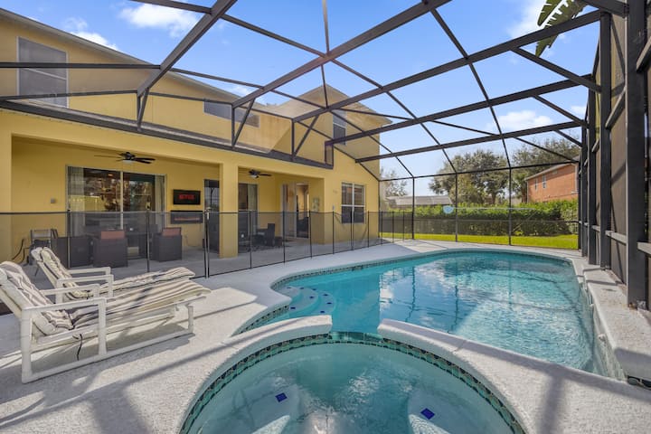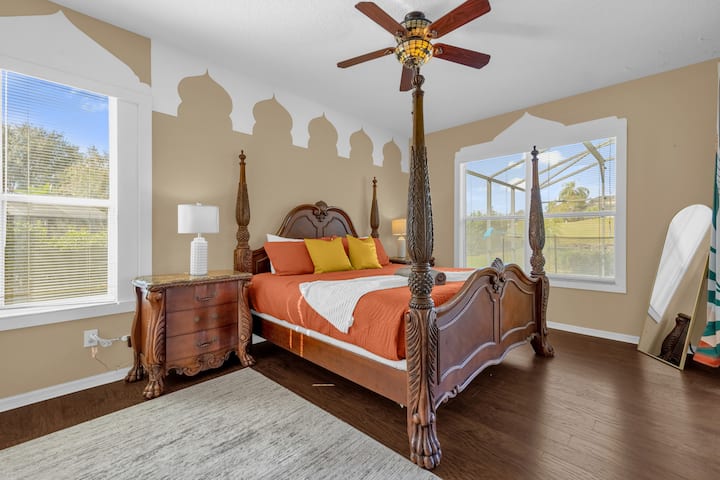 距离华特迪士尼世界主题公园仅15分钟。 这套宽敞的7卧室房源位于翡翠岛度假村,非常适合大家庭或团体入住。 房源设有主题卧室、多间特大号套房、私人泳池和水疗中心,距离迪士尼仅几分钟车程,既舒适又有趣。