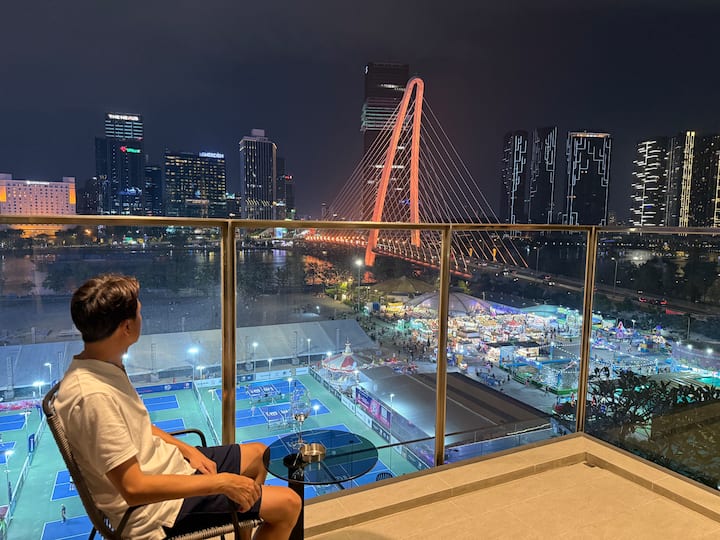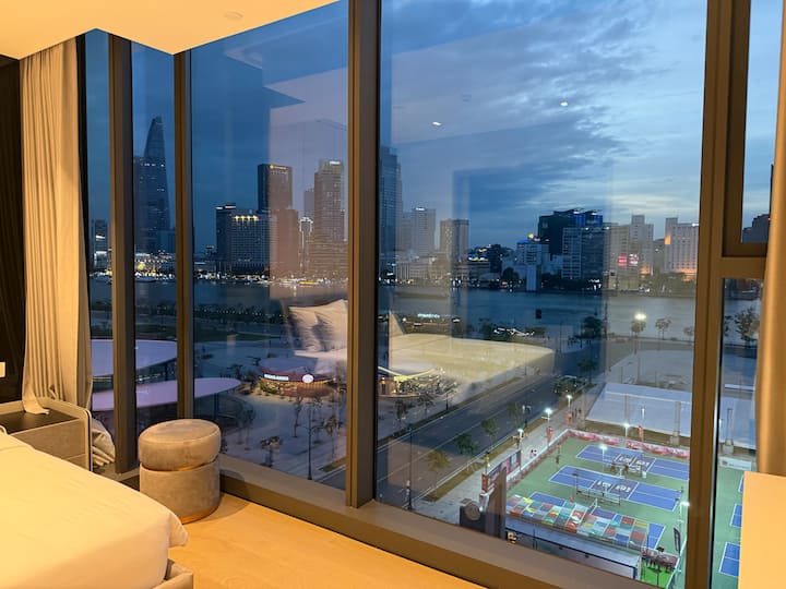 大楼正下方是步行街和Thu Thiem河畔公园,那里有全天候的娱乐活动。 此外,您可以在沿河的星巴克( Starbuck )享用一杯咖啡,欣赏美丽的景色。