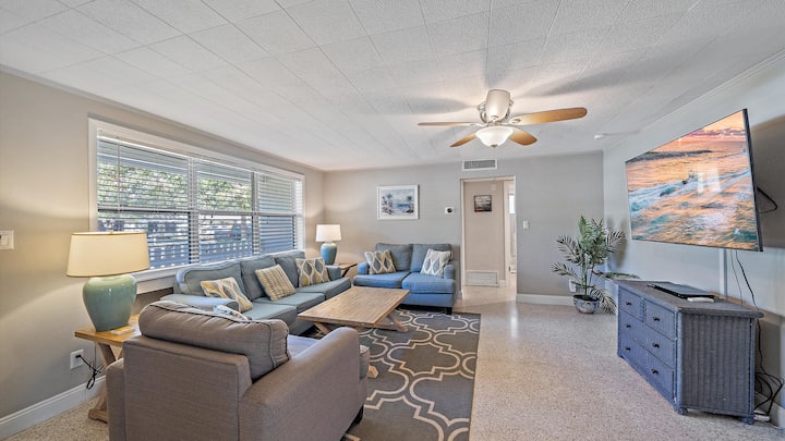 地理位置优越,可前往萨拉索塔( Sarasota )的所有景点--海滩、夜生活和冒险。 巨大的私人后院,配有篝火炉、烤架和露台。 房源储备齐全,配备了海滩度假所需的一切必需品。