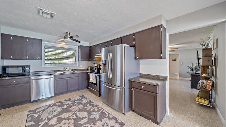 欢迎来到您完美的萨拉索塔度假胜地! 这栋迷人的佛罗里达3卧2卫房源坐落在市中心,拥有海滨氛围,采用浅蓝色、灰色和白色调,装饰和家具。 这座迷人的度假胜地靠近商店、阿灵顿公园基督教青年会( Arlington Park YMCA )和遗产步道( Legacy Trail ) ,为寻求轻松假期的家庭、朋友或情侣提供了便利和舒适的住宿体验。