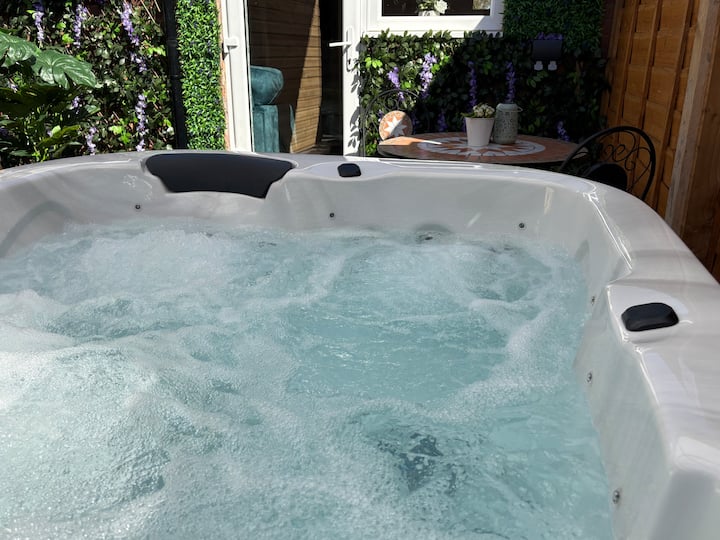 在热水浴缸中放松身心