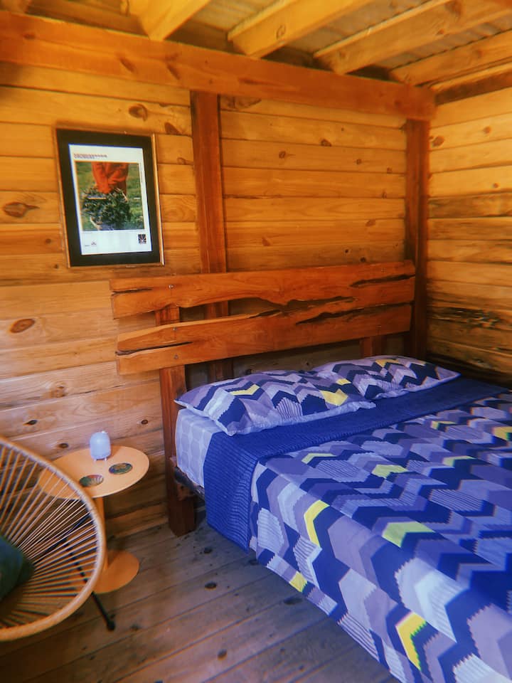 带标准双人床的木屋