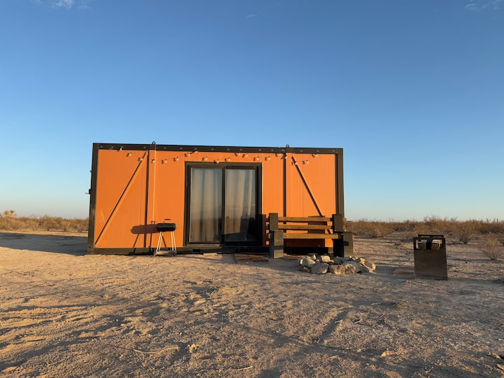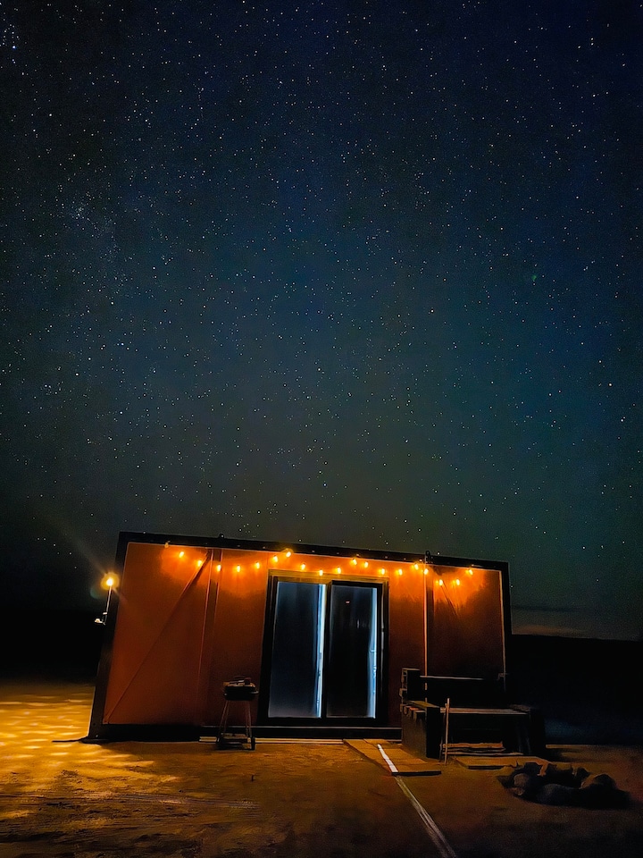 集装箱完全离网,没有电或自来水,是自行清洁的。 房源位于沙漠中,有时可能会有灰尘,因为在这种环境中,不可能完全保持无尘。 由于地处偏远,您可能会在房源周围看到野生动物,虽然极为罕见,但昆虫偶尔会进入集装箱。 这就像露营一样,但增加了记忆泡沫床垫的奢华体验! 太阳能灯在黄昏时照亮外部,室内有电池供电的灯。 为了方便起见,我们建议您携带手电筒或露营灯,在夜间游览该地区。 此外,请务必携带充足的水,我们建议您至少饮用5加仑,用于饮用和清洁。