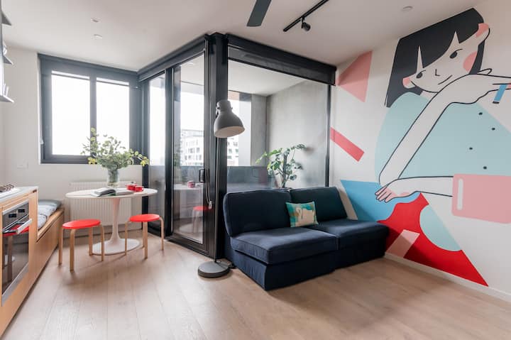 在色彩缤纷的屋顶住宅中欣赏独一无二的壁画