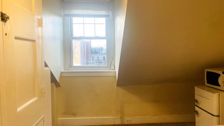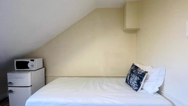 宽敞的房间配有一张全尺寸床、一个大落地壁橱、办公桌、一个高效的小厨房,供您准备简餐。 无法使用厨房,但您可以找到小冰箱、微波炉、咖啡机、电热盘,供您烹饪简餐(想想意大利面、三明治或炒鸡蛋)。 出于安全考虑,严禁携带烟雾或强烈气味的丰盛餐(即煎牛排)。 所有盘子/平底锅都可以在厨房水槽中清洗,但我们要求租户在此之前清洁/擦拭所有油脂和食物残留物。