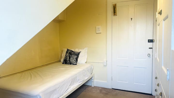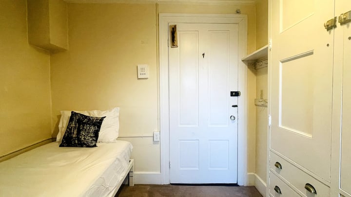 客房和地板拥有独特的设置。 您可以把它想象成一间宿舍,您有自己的私人空间,两层楼有两个共用卫生间,但没有其他共用空间(客厅、厨房等)。 共用卫生间每周清洁一次,我们要求所有租户在您个人使用后整理房源。 该布置自然可以防止吵闹的派对。 您可以回到一个安静而私密的空间,放松身心。