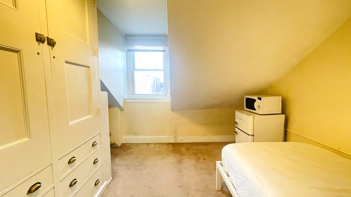 1)比肯山市中心的双床房+共用卫生间。 请勿使用客厅和厨房。 客房配有迷你冰箱和微波炉