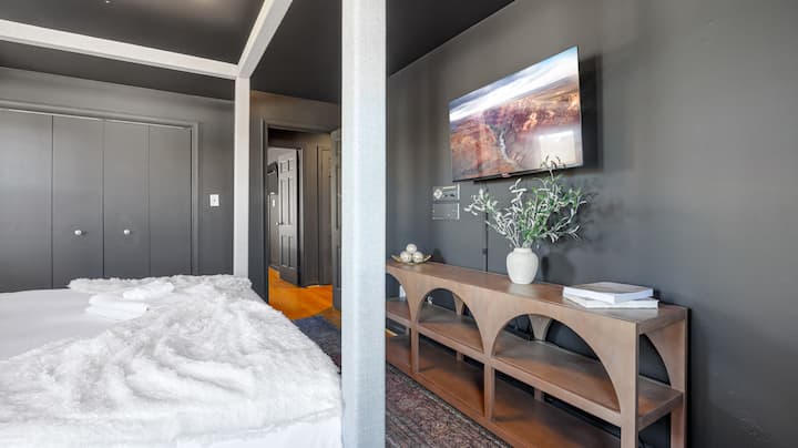 楼上装潢精良的卧室提供宁静的避难所,每间卧室的设计都很舒适。 在主卧室享受宁静的夜晚,俯瞰老城区充满活力的街道,但让您远离喧嚣的城市生活。