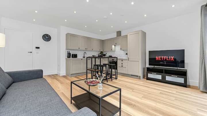 现代1卧室住宿,带阳台,位于东克罗伊登