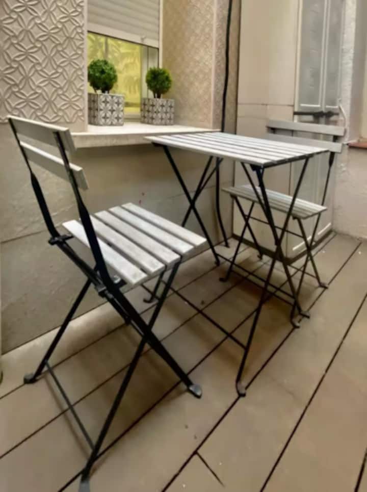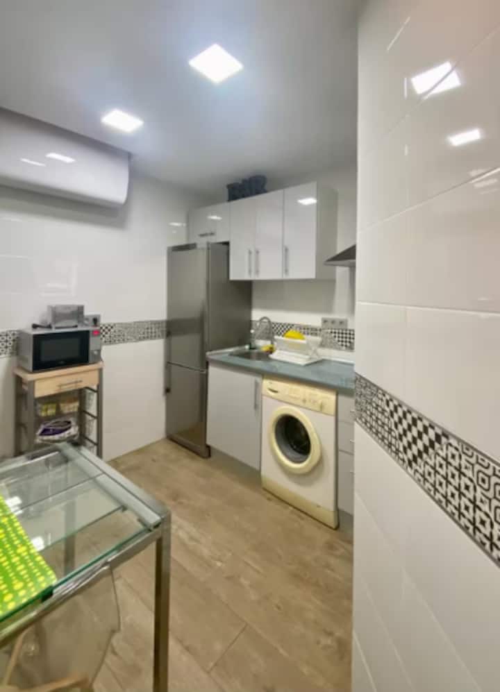 厨房设施齐全,提供您自己烹饪美食所需的一切,包括烤面包机、微波炉、带冰柜的冰箱、陶瓷炉灶和洗衣机。 此外,还有一个小露台,配有两把椅子和一张木桌,您可以在户外享用咖啡,这是马德里市中心的奢华体验。