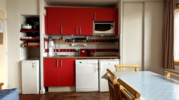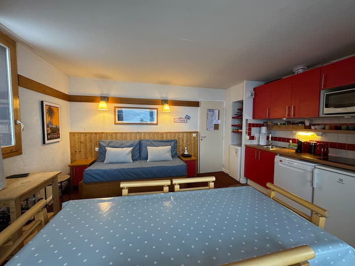双床公寓,距离滑雪道5分钟,Plagne 1800,可住6人