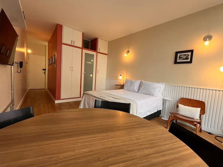 位于标志性的科潘大厦(Edifício Copan),这里是尼迈尔建筑和圣保罗充满活力的生活的象征。 我们的公寓兼具魅力、舒适和实用性,装饰舒适,设备齐全。 距离最好的餐厅、酒吧和文化景点仅几步之遥,您将体验圣保罗的真正位置,周围有历史和活力的中心。