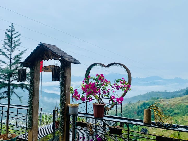 云雾缭绕的山景水稻梯田度假屋