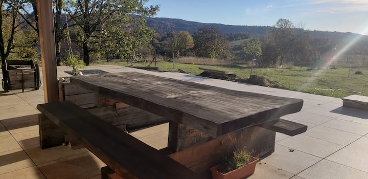 靠近瀑布的木制度假木屋,视野开阔