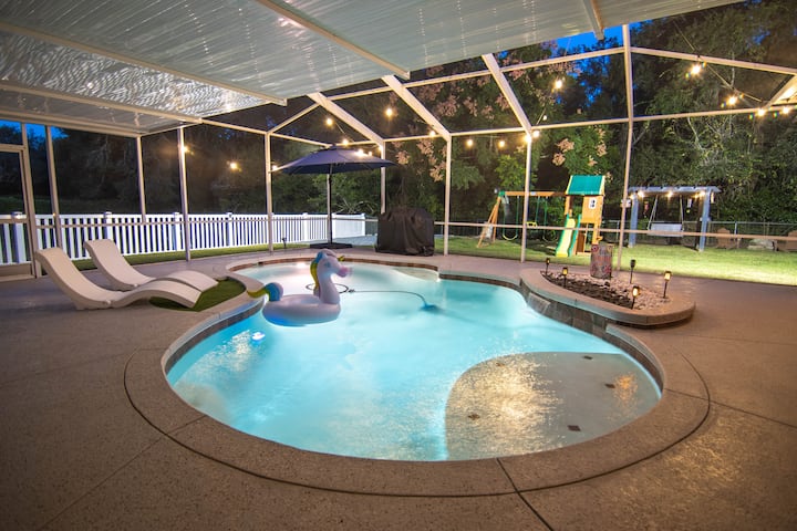 带加热泳池的房源,带游乐场,可睡12人,迪士尼TPA