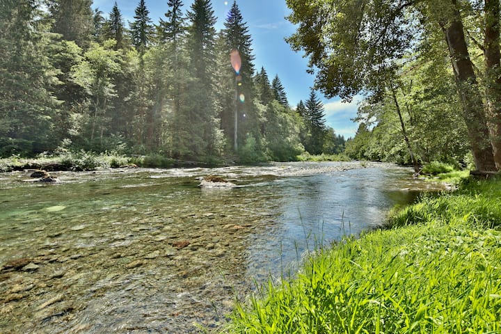 热水浴缸、烧烤、Sol Duc河景,可携带宠物入住
