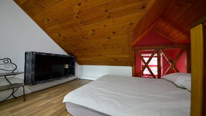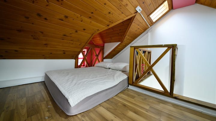 双层公寓:客厅+厨房+卧室A ( 1张双人床) + 1间卫生间
