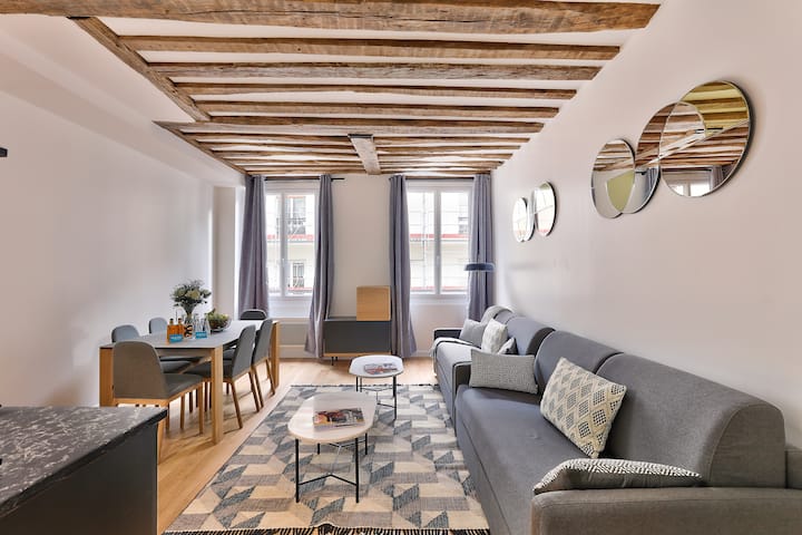 我们很高兴地通知您,无论您预订的人数多少,我们都会提供床单和毛巾,以达公寓的最大容量。 < br > < br >表面45平方米< br >可容纳6人< br > 4楼(无电梯) < br > < br > 1号房间配备双人床< br >客厅配备2张双人沙发床< br > 1间带厕所的卫生间< br > < br > 1间带厕所的卫生间< br > < br >为了让我们在最好的卫生条件下迎接您,我们的公寓式酒店经过彻底清洁和消毒。< br > < br >我们的公寓最多可容纳6人,让您在巴黎住得舒适;配备无线网络、吹风机、烤面包机、咖啡机、水壶、电暖气、电视。< br > < br >紧凑的开放式厨房设备齐全(冰箱、微波炉、烤箱、冰柜、陶具/刀具、餐具/厨房、咖啡机、烤面包机和水壶)和您可以轻松与朋友或家人一起准备餐点、小吃或开胃酒。< br > < br > < br >坐在餐桌旁或在客厅的沙发上放松身心,您将分享真正的欢乐时刻。< br > < br >我们的公寓将以其优雅和清爽,但也会通过其明显的梁的舒适和温馨的氛围吸引您。< br > < br >通常是巴黎风情。地理位置优越,位于巴黎市中心,靠近首都最好的景点、博物馆、酒吧和餐厅。< br > < br >我们所在的Montorgueil区到处都是小设计师商店、美味的面包店、奶酪店和迷人的美食精品店,还有众多小餐厅和热闹的酒吧。< br > < br >如何步行前往卢浮宫、乔治·蓬皮杜博物馆、Les Halles、只需15分钟即可抵达歌剧院或林荫大道( Grands Boulevards ) ? < br > < br >与Louis Xiv、Jean Paul Gaultier或Michael Jackson一起喝一杯如何? 在巴黎这个独一无二的地方格雷文博物馆( Musée Grévin )参观期间,您可以与200多位制作或演绎昨天和今天历史的角色一起摆姿势。< br > < br > < br >我们期待您的光临,并与我们分享美好的时刻! < br > < br >旅游税适用< br > < br >注意:严禁举办派对,无需补偿即刻终止预订< br > < br > < br >对于新年期间的所有预订,我们将要求您支付750欧元的押金。< br > < br >您的预订受到保护。 如果在您抵达前发生技术事件,我们将为您提供升级或类似的公寓。
