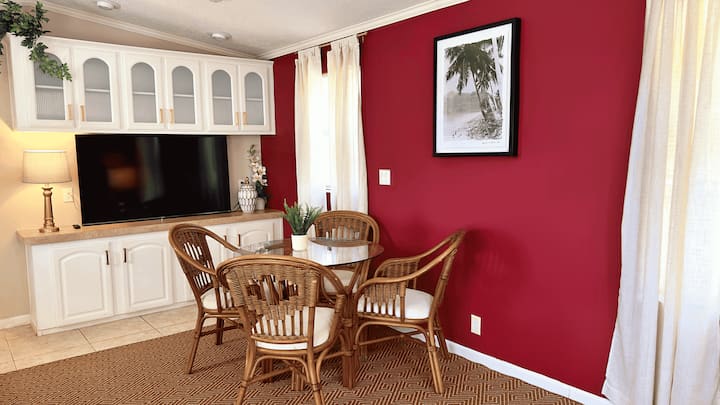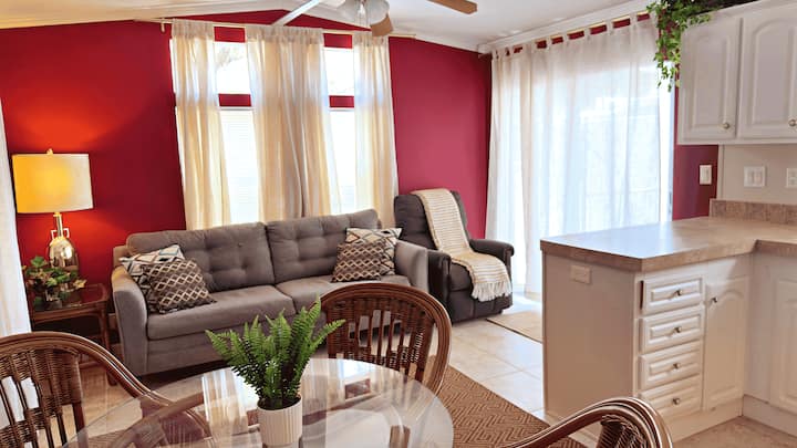 逃往宁静小屋,这是一间装修精美的单卧室、单浴室房源,位于坦帕东部房车度假村(Tampa East RV Resort)。 这处温馨的度假屋非常适合家庭、情侣或独自旅行者入住,提供所有家居舒适设施以及独家度假村式设施,包括波光粼粼的泳池、令人放松的热水浴缸、狗狗公园、俱乐部会所等。