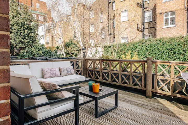 带户外用餐区的✔私人花园——这是伦敦极为罕见的一处设计精美的花园度假屋,设有可容纳6人用餐区、烧烤区和郁郁葱葱的��地。