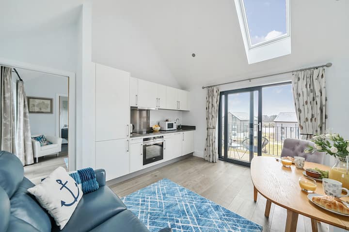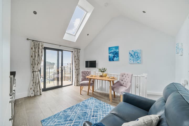 Bijou Swan Cottage是情侣或小家庭度过浪漫假期、放松假期或活动假期的完美之选。 该房源位于新月拱门下方,通往前门和入口大厅,迷人的朝南住宿提供明亮的开放式起居区和带用餐空间的厨房,以及配备豪华Tempur床垫和套房淋浴间的加大双人床卧室,所有这些都位于一楼。 双面窗户和拱形天花板营造出通风、轻松的氛围和宁静的空间。 滑动法式门通往宽敞的阳台,您可以在那里放松身心,欣赏博蒙特湖的美景,远处是松树岭和多塞特乡村。