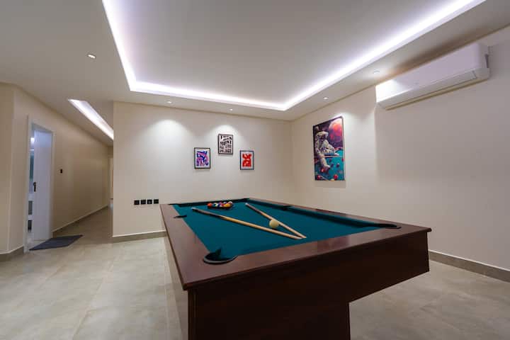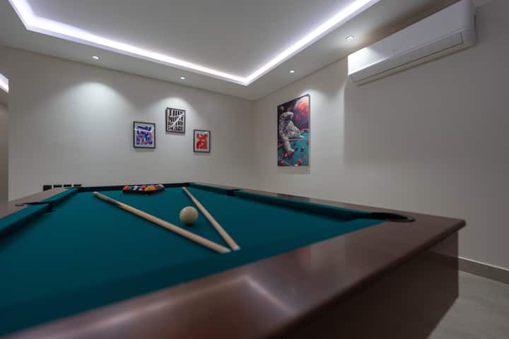 两卧室公寓、客厅和17米台球