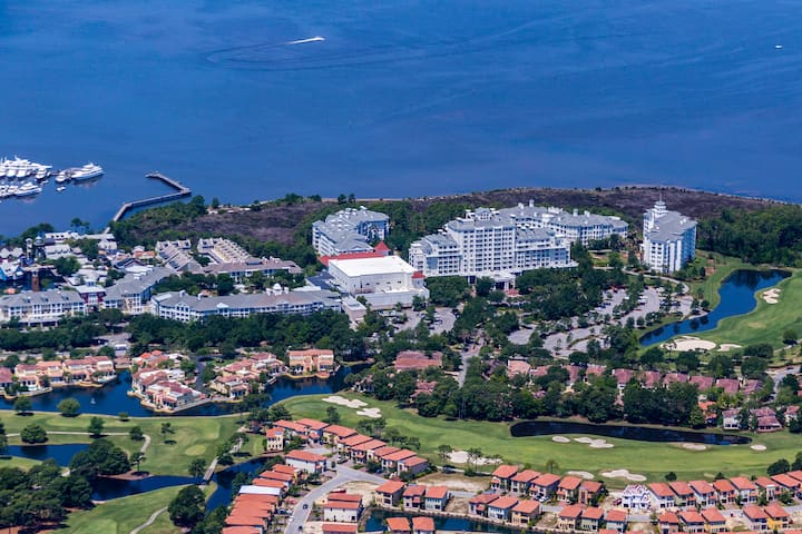 桑德斯廷高尔夫和海滩度假村占地2400英亩,拥有72个高尔夫球洞、一个带两个热水浴缸的华丽游泳池、14个网球场、一个全方位服务的水疗中心和健身中心、高空飞索、一个98个泊位的码头,提供喷气式滑雪和皮划艇租赁,并且可以安排在Baytowne Wharf停船,但需额外收费。 如果这还不够,距离Sandestin美妙的糖白色海滩的车程很短!