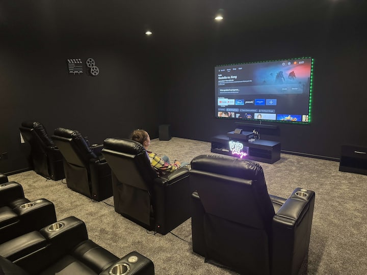 带100英寸屏幕的☞私人影院、爱普生投影仪、躺椅、环绕立体声