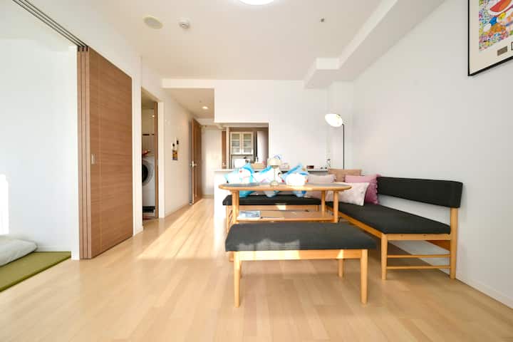 大阪中心道顿堀高端两室一厅公寓、地铁口1分钟・机场直达大巴、黑门市场三分钟难波五分钟步行距离超级便利