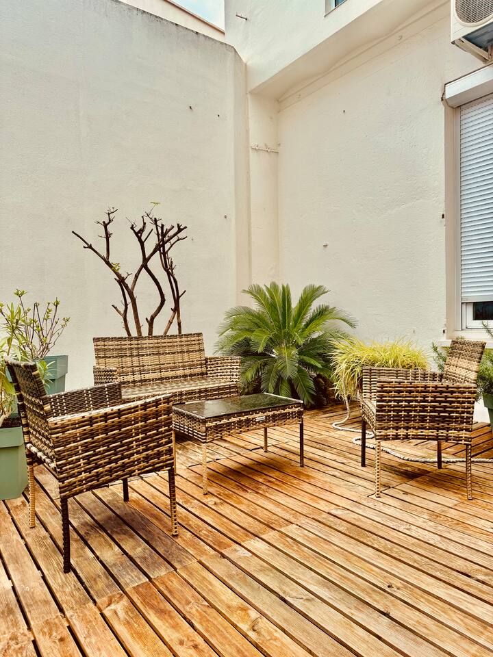 戛纳中心地带带露台的美丽单间公寓