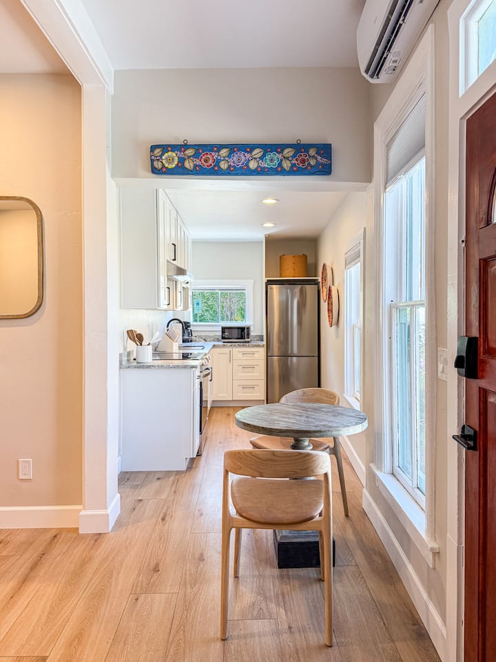 欢迎来到蓝亚麻套房,这是一套温馨开放的单卧室公寓,位于一楼。 这套精致的房源布局宽敞,非常适合希望在圣达菲繁华的Railyard艺术区寻找时尚而舒适的家园的旅行者。 这间套房非常适合短期或长期住宿的房客。