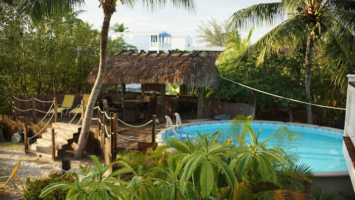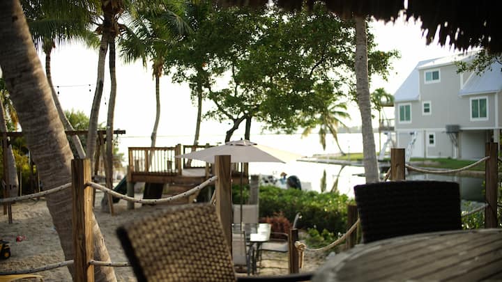这座宽敞的4卧室、2卫生间的海滨房源(2,600平方英尺)位于Saddlebunch Key,让您远离喧嚣。 享受私人泳池、tiki小屋、皮划艇和定制游乐设施,距离公园和当地咖啡馆仅几步之遥。 您完美的每月度假胜地!
