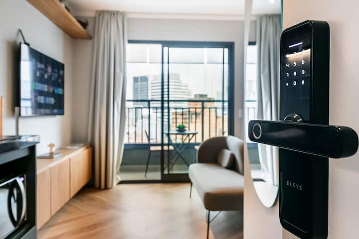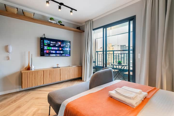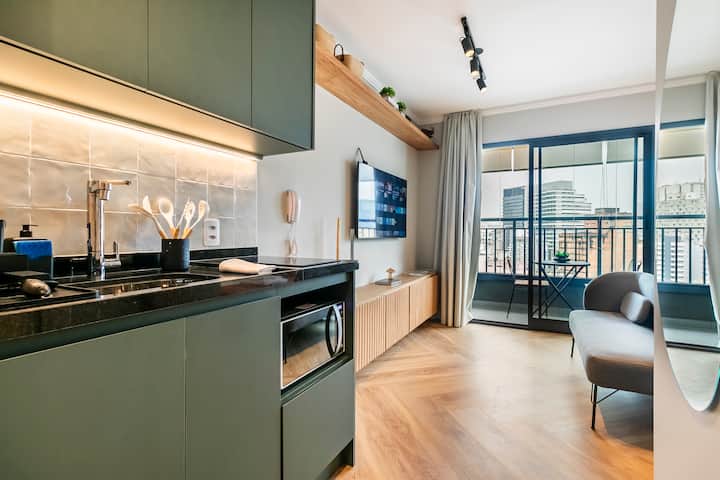 Studio Nova,位于圣保罗市中心,设有完整的休闲区,风格独特。 距离共和国地铁站350米,靠近主要景点。 推荐给来这里工作或休闲的人士。